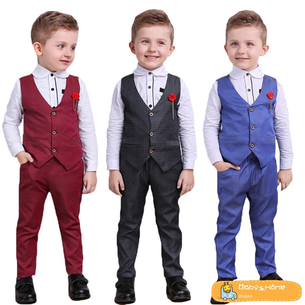 3pcs Toddler Boy Ring Bearer Formal Vest Suit Wedding Birthday Party Outfits Shopee Singapore